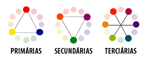 CORES TERCIÁRIAS, formadas pela mistura de uma cor primária com uma secundária;
